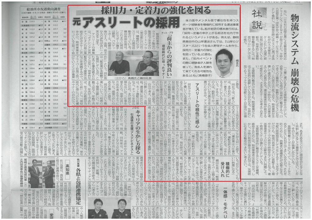 元アスリートの積極採用ということで物流ウィークリーに掲載いただいてから